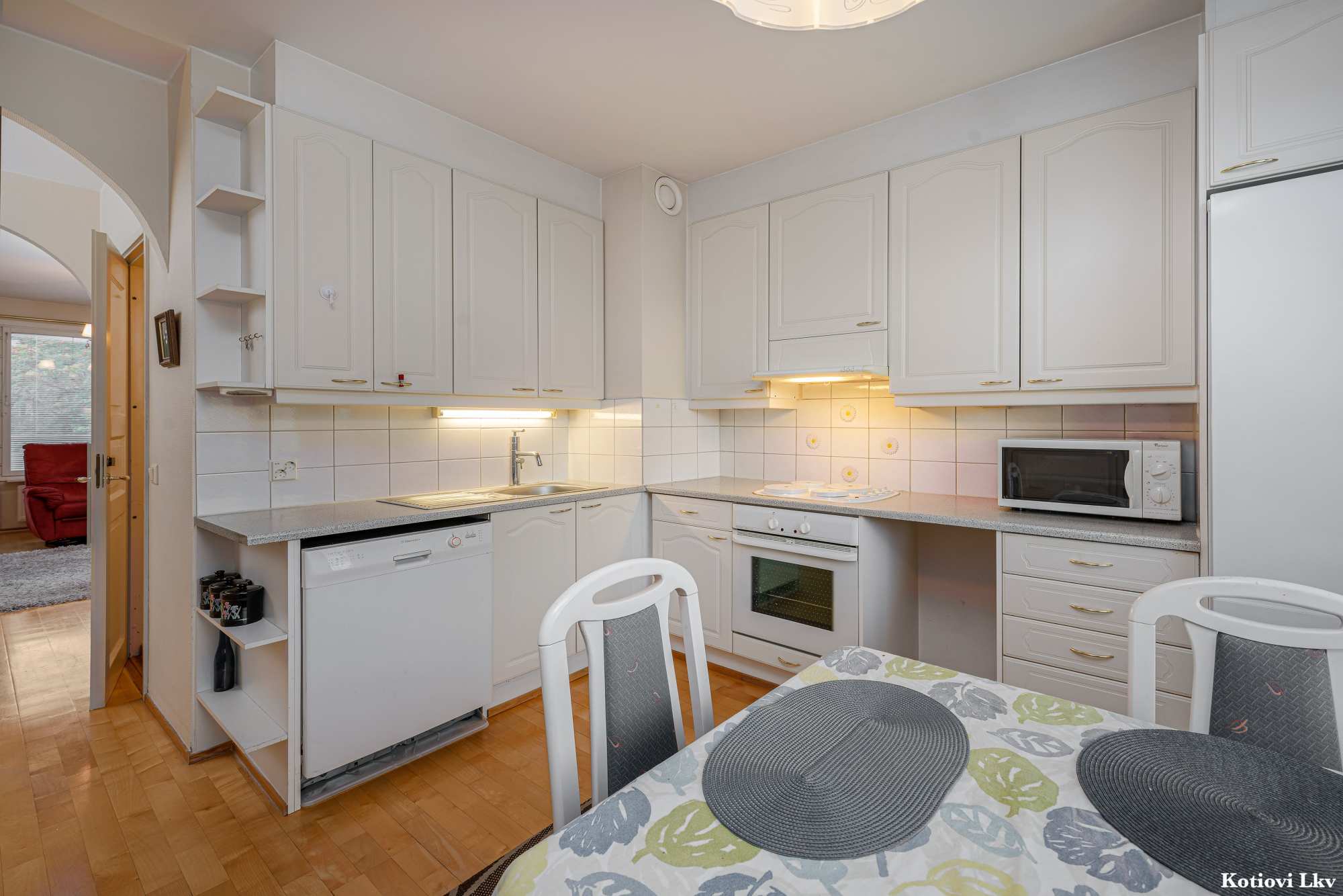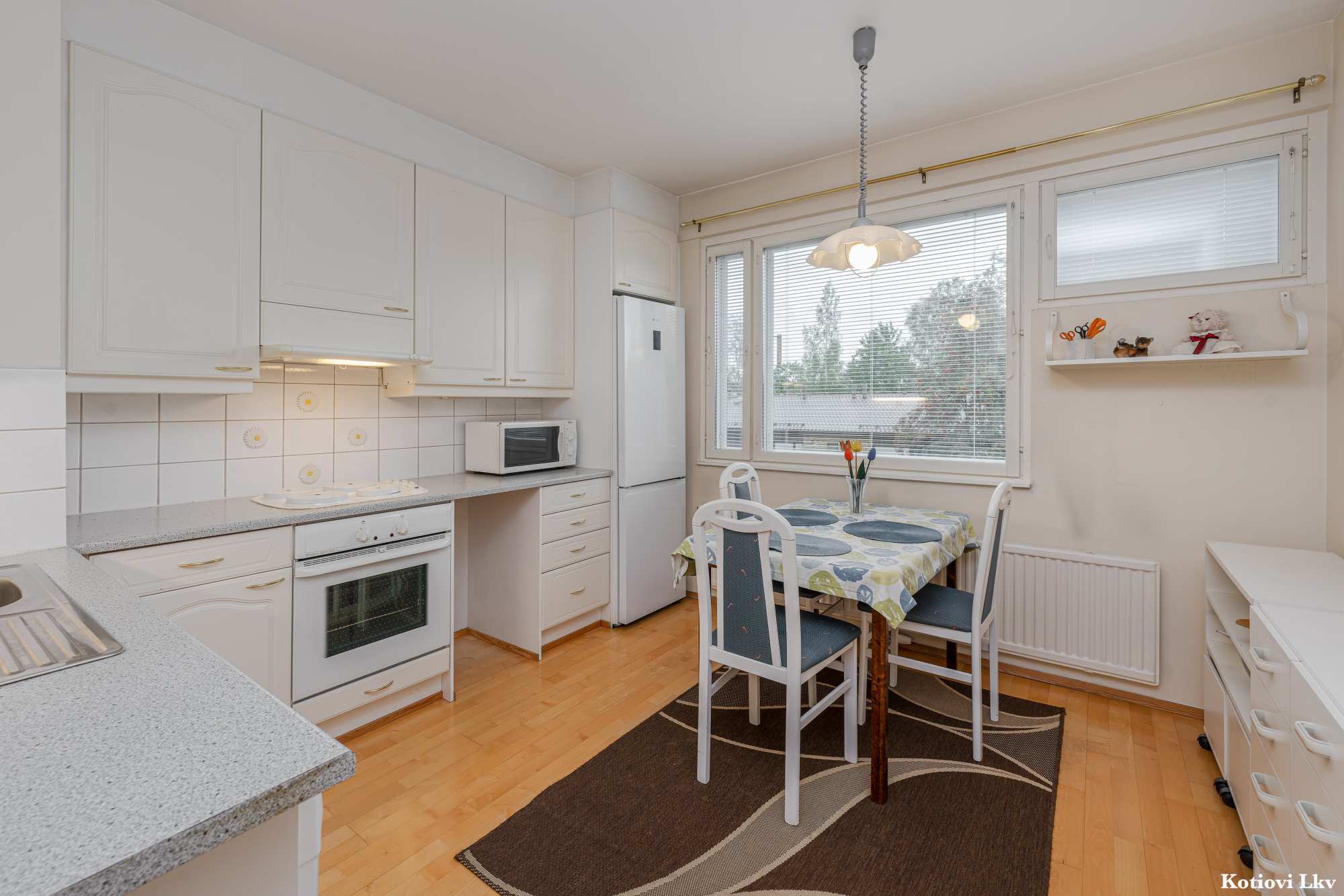 Keittiön materiaalit | Lattia: Parketti Seinät: Maali |
