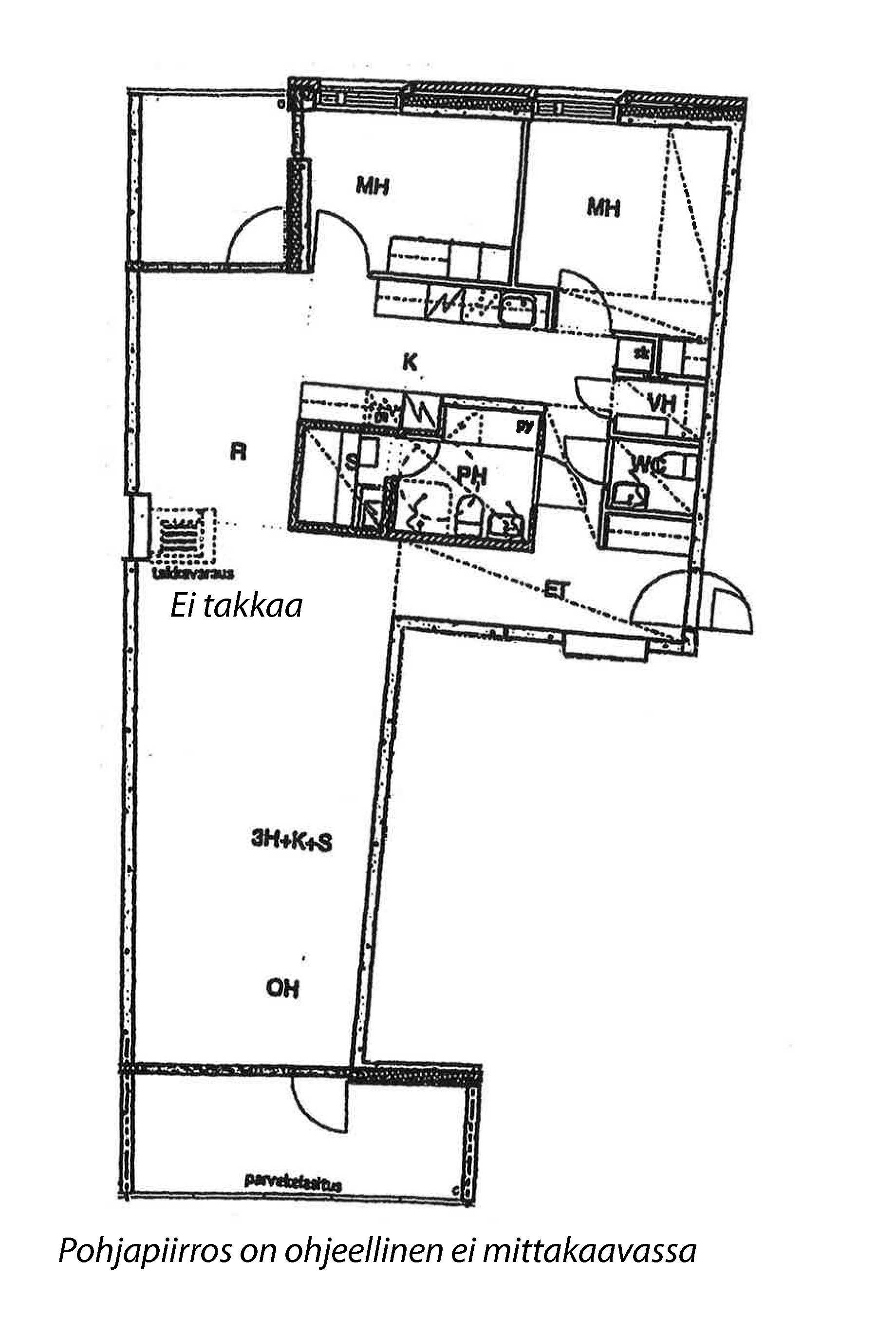 3h,k,s,kph,erillinen wc,vh, 2 x lasitettu parveke