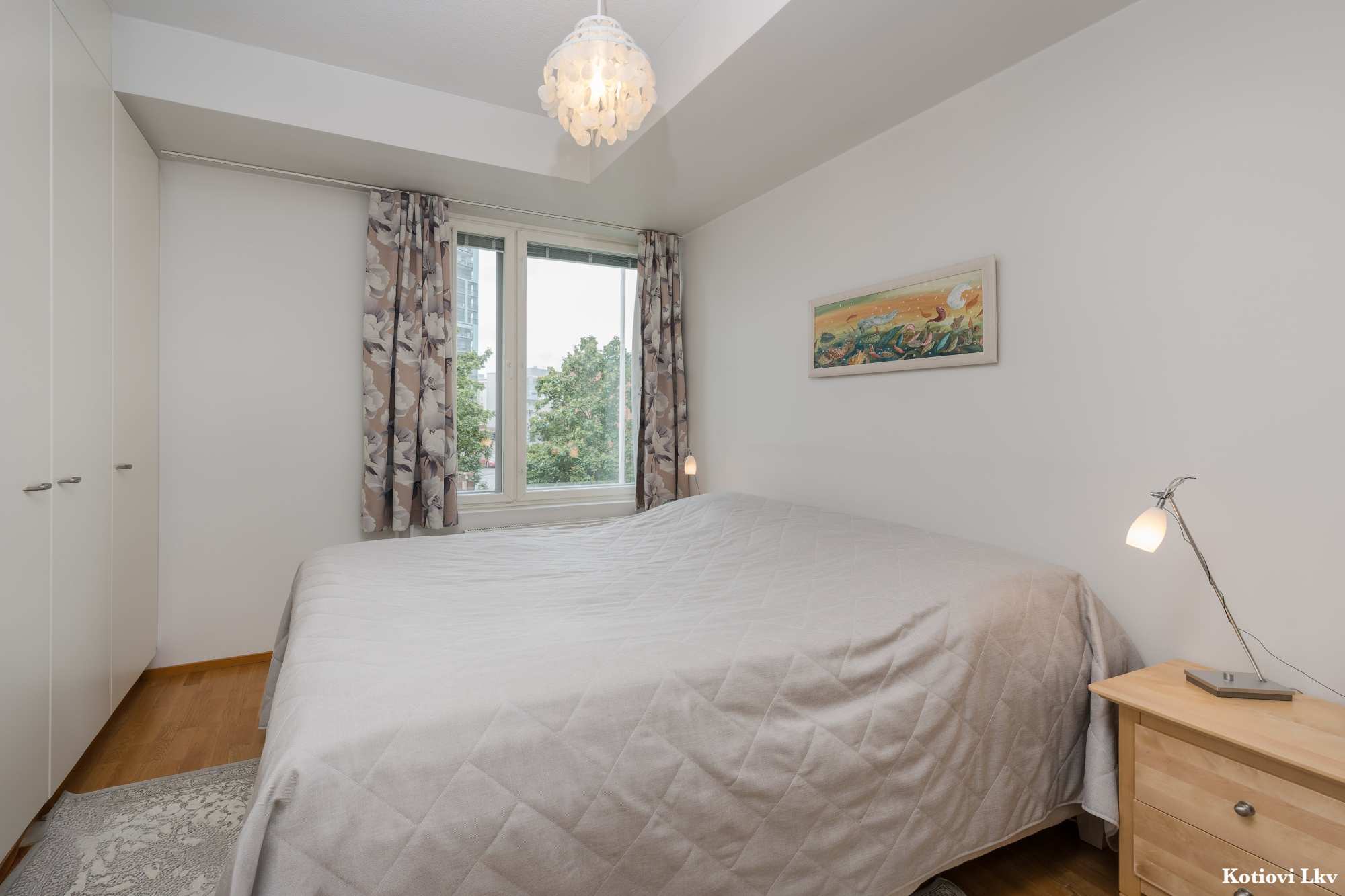 Makuuhuoneen materiaalit | Lattia: Parketti Seinät: Maali |