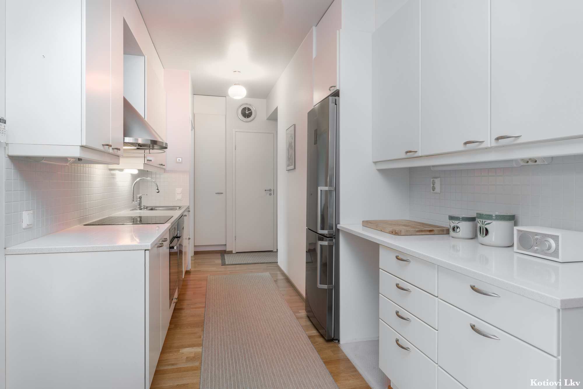 Keittiön materiaalit | Lattia: Parketti Seinät: Maali |