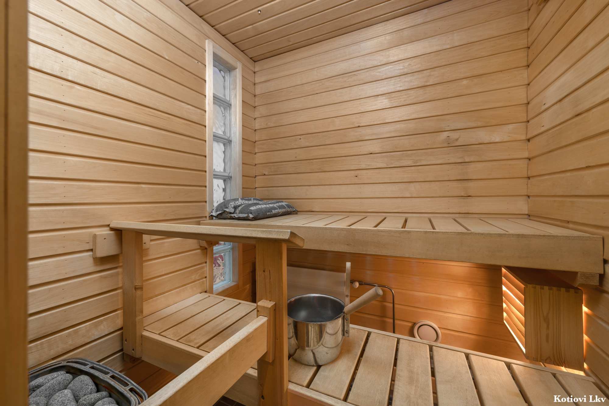 Keittiö on hyvin varusteltu ja olohuoneessa on kaunis parkettilattia, joka jatkuu myös makuuhuoneisiin. Oma sauna tuo arkeen ripauksen luksusta, ja kylpyhuoneen lattialämmitys lisää asumismukavuutta. Säilytystilaa löytyy reilusti, muun muassa vaatehuoneen ja kellarikomeron muodossa. Mahdollisuus ostaa myös lisävarasto kellarista.