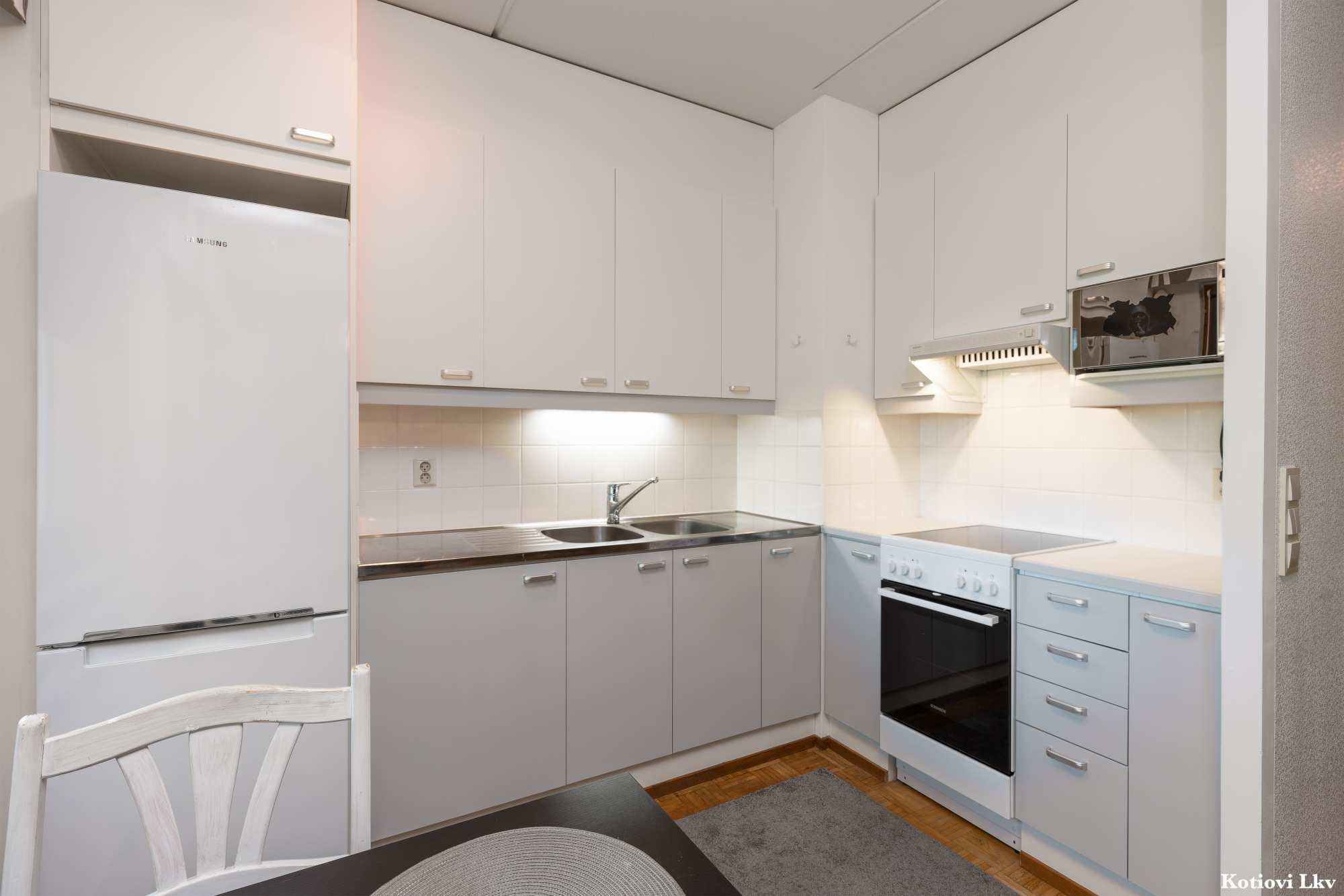 36 m2 asunto sijaitsee talon ylimmässä kerroksessa ja tarjoaa mukavan kodin niin yksinasujalle kuin pariskunnallekin. Asunnon valoisa olohuone yhdistyy kätevästi keittiöön, jossa kaapistojen ovet on juuri maalattu. Alkovi tuo mukavasti lisätilaa ja rauhaa nukkumiseen.