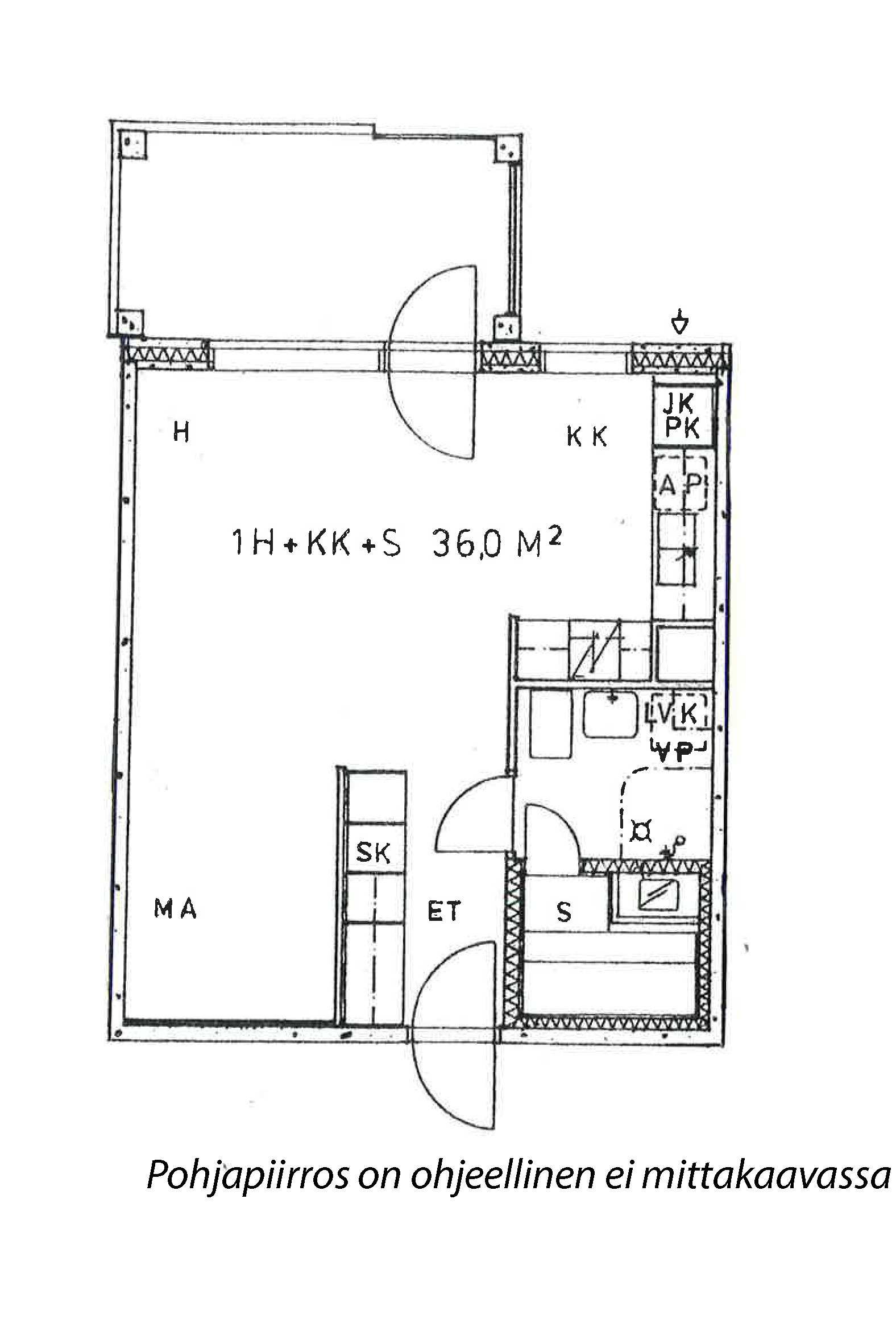 Huoneistoselitelmä | 1h,kk,alkovi,s,lasitettu parveke |
