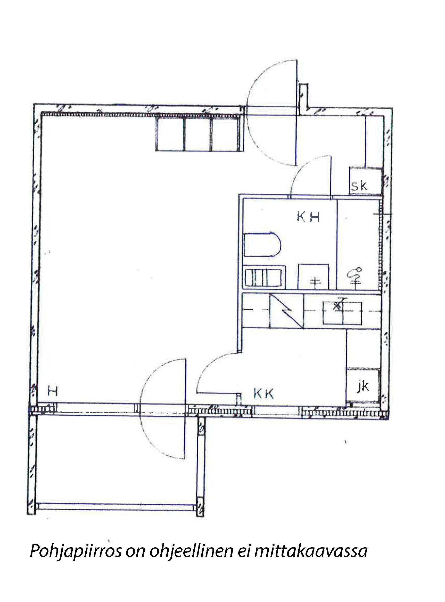 Lisätietoja pinta-alasta | Ei tarkistusmitattu. Pinta-alat saattavat tämän ikäisissä kohteissa (yhtiö rekisteröity ennen 01.01.1992) poiketa olennaisestikin asuinrakennusten nykyisten mittaustapojen ja standardien (SFS 5139) mukaan laskettavasta asuintilojen pinta-alasta. Pinta-ala voi siis olla edellä mainittua pienempi tai suurempi. |