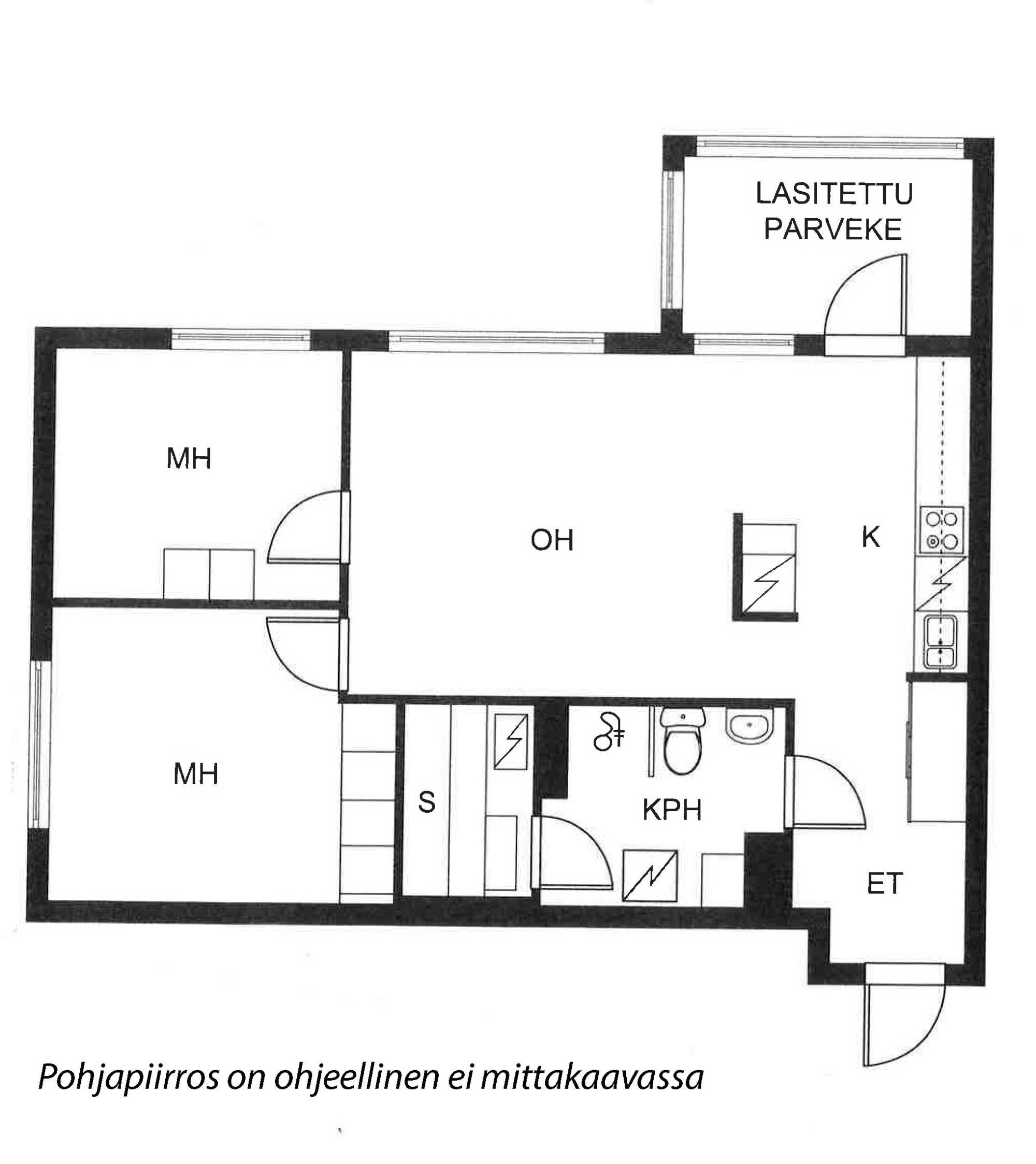 Huoneistoselitelmä | 3h,kt,s,lasitettu parveke |