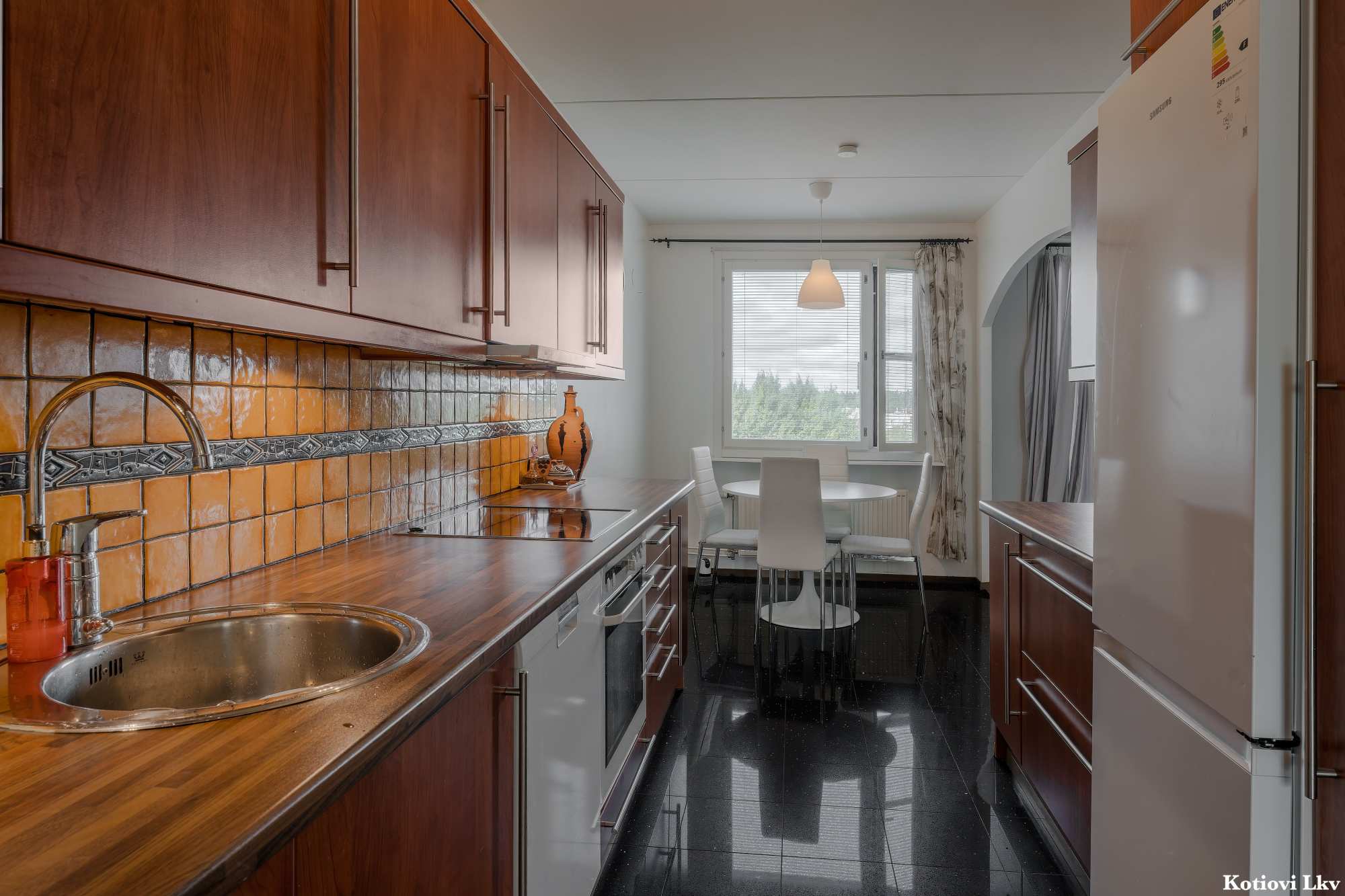 | Keittiön varusteet | Jääkaappipakastin, liesi, liesituuletin ja astianpesukone |