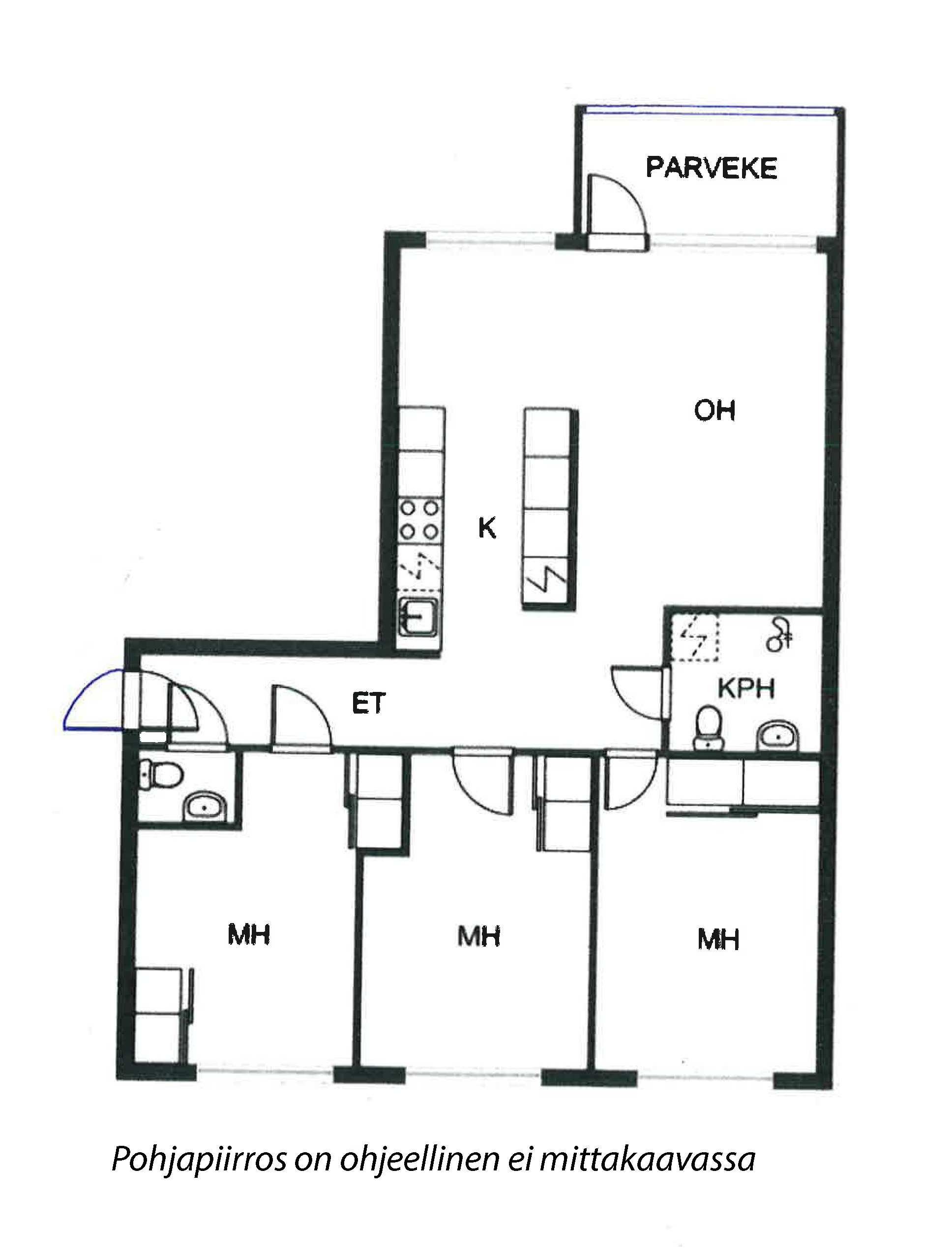 | Huoneistoselitelmä | 4h,k,kph,lasitettu parveke |