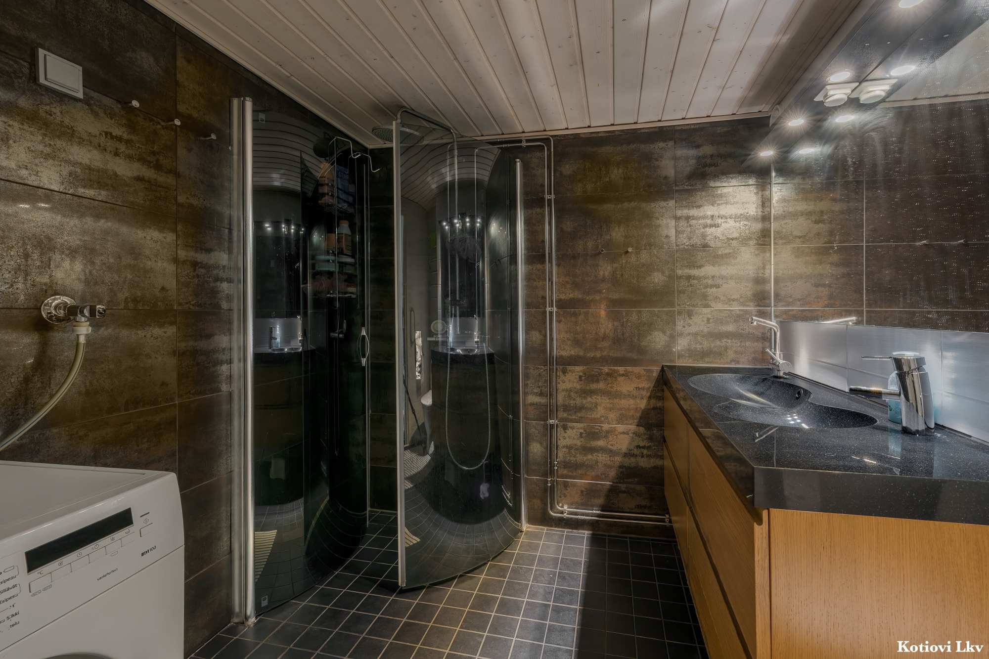 | Kylpyhuoneen varusteet | WC-istuin, suihku, peilikaappi, pesuallas ja allaskaappi |