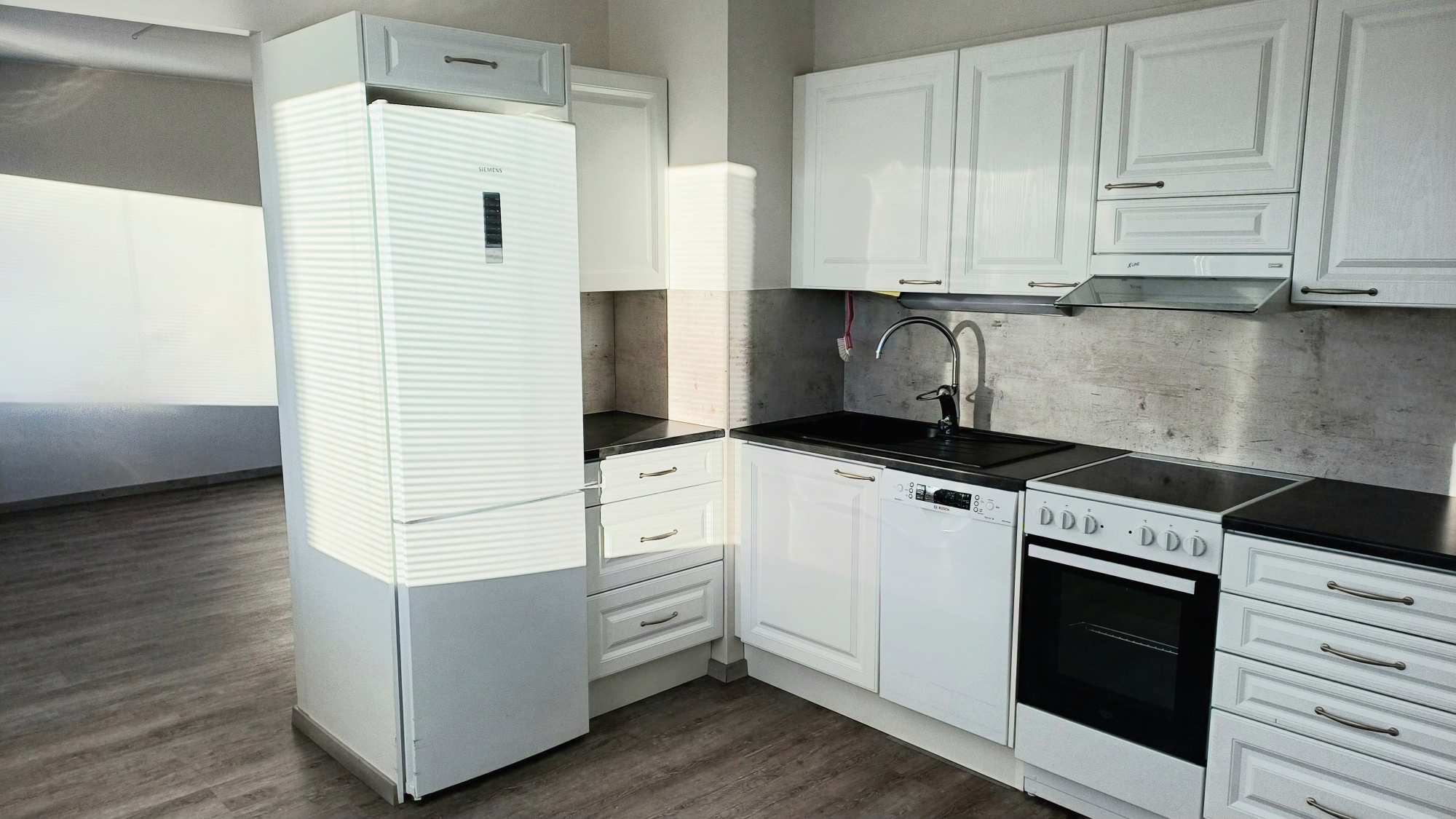 Keittiö on varustettu nykyaikaisilla kodinkoneilla, kuten jääkaappipakastimella ja astianpesukoneella. Kylpyhuoneessa on pesukoneliitäntä, ja se on tyylikkäästi laatoitettu. Asunnon pinnat ovat hyvässä kunnossa, ja tilavat huoneet tarjoavat mahdollisuuksia monenlaiseen sisustukseen.