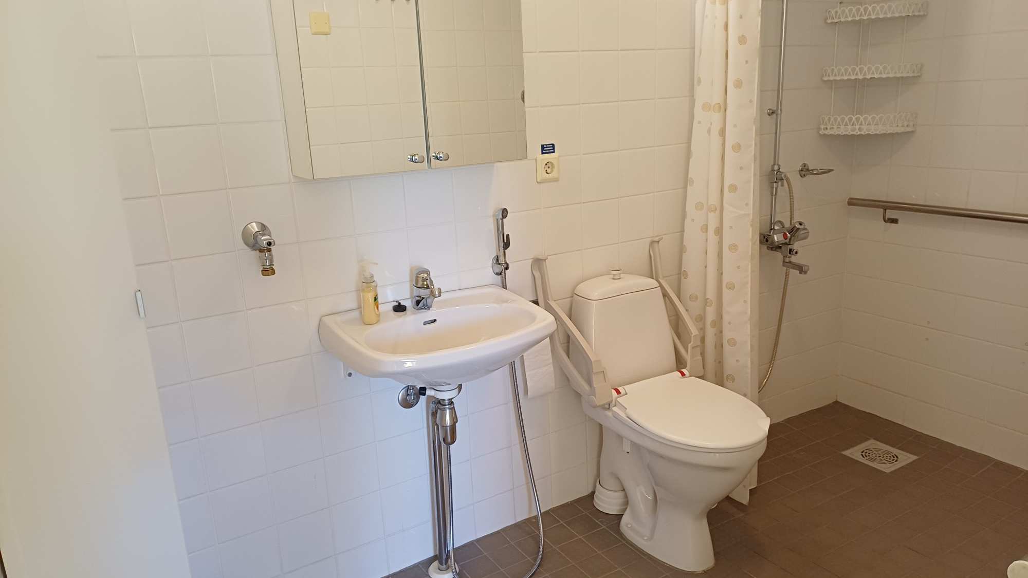 | Kylpyhuoneen varusteet | WC-istuin, peilikaappi, pesuallas, bidee-suihku, suihku, pesukoneliitäntä ja pyykkikaappi |