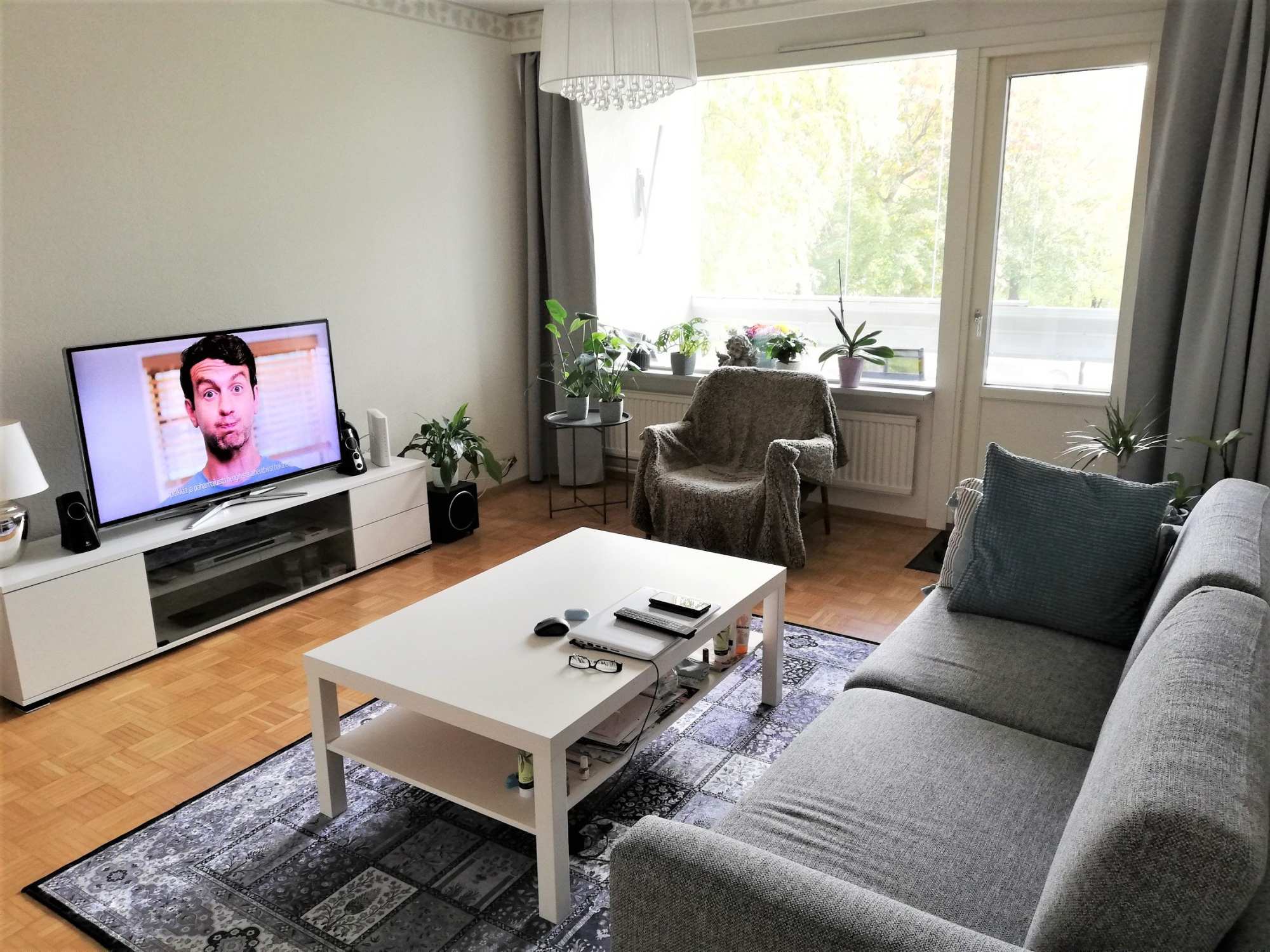 | Olohuoneen materiaalit | Lattia: Parketti Seinät: Maali ja tapetti |