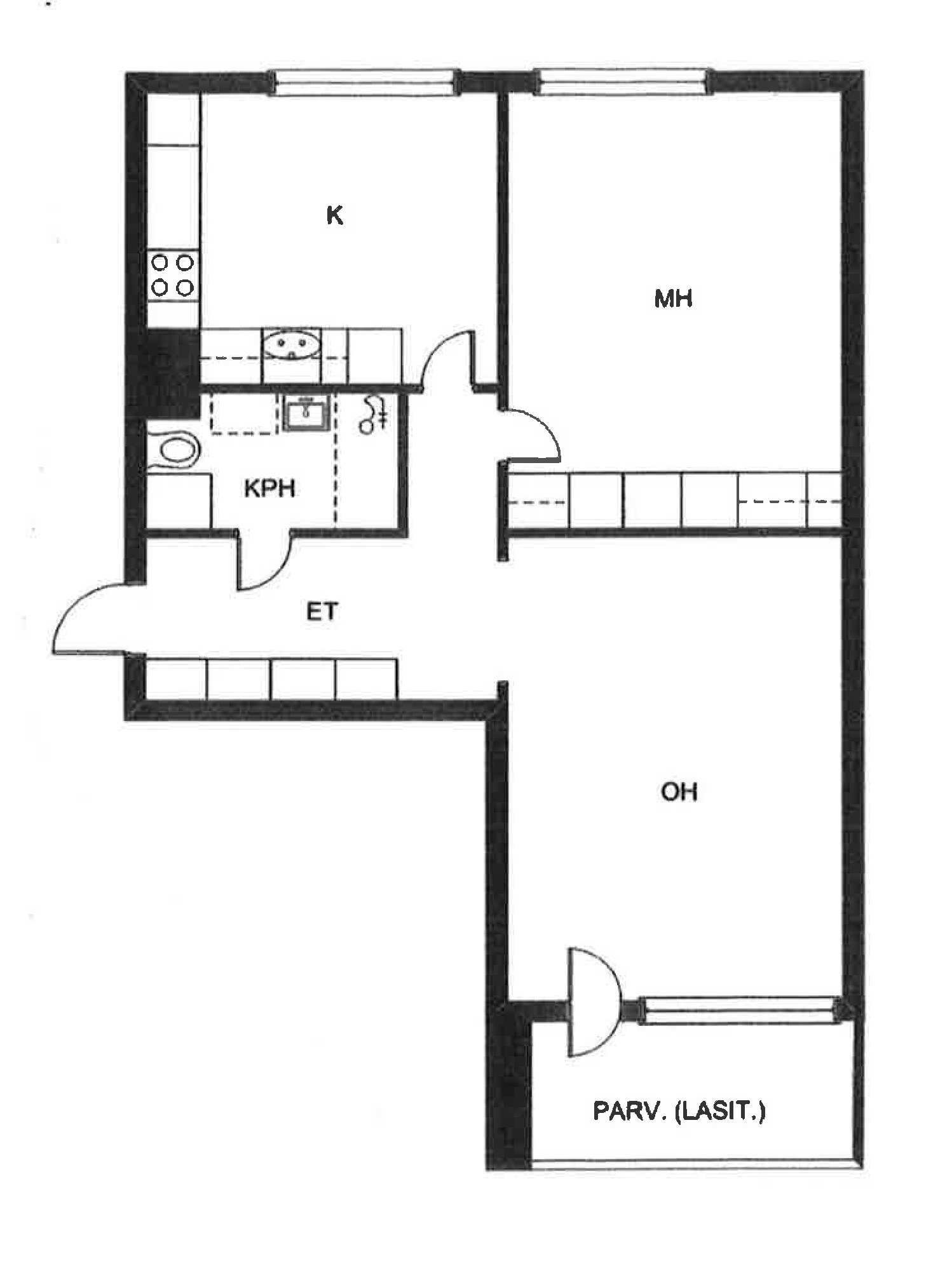 | Huoneistoselitelmä | 2h,k,kph,lasitettu parveke |