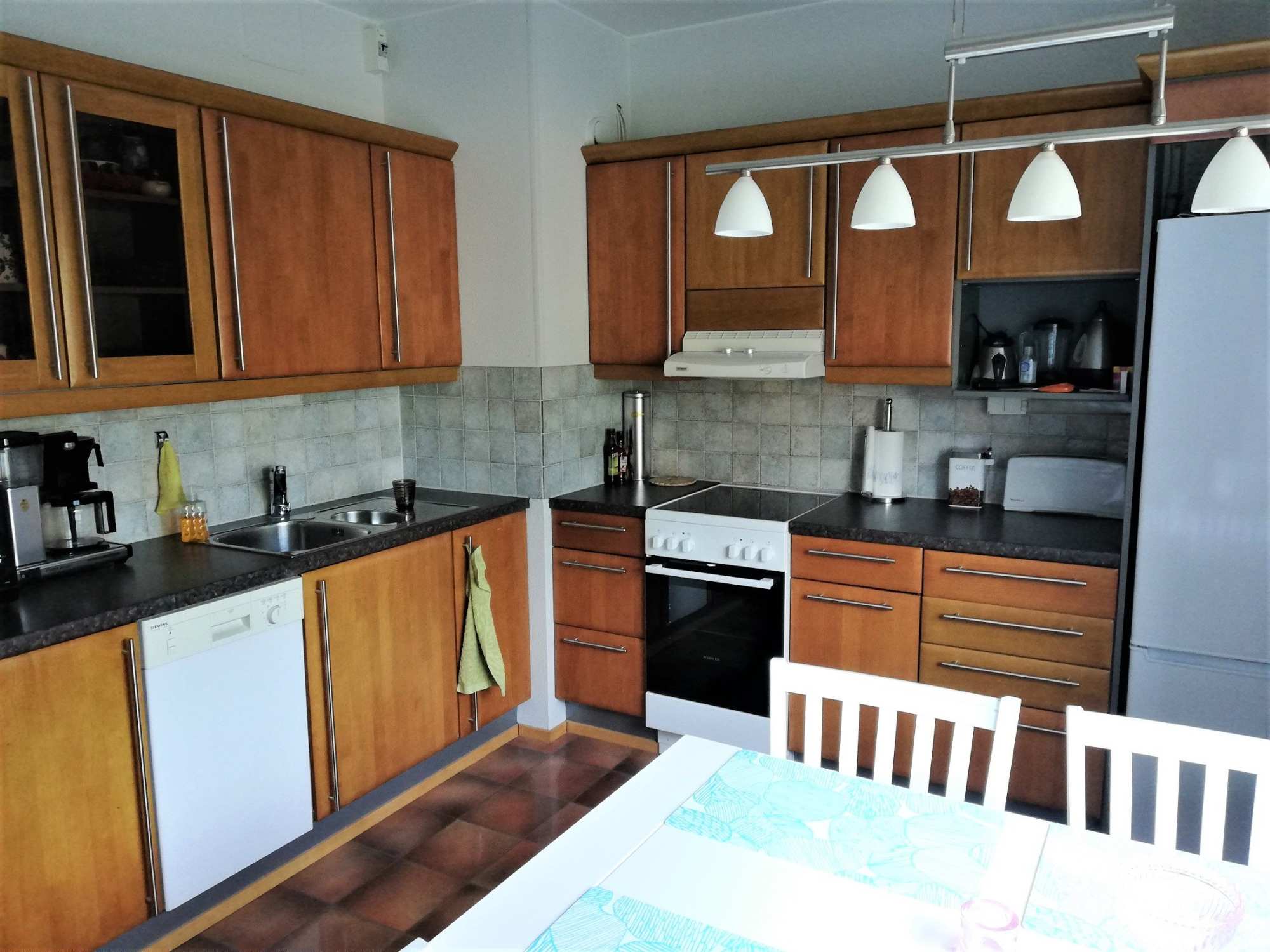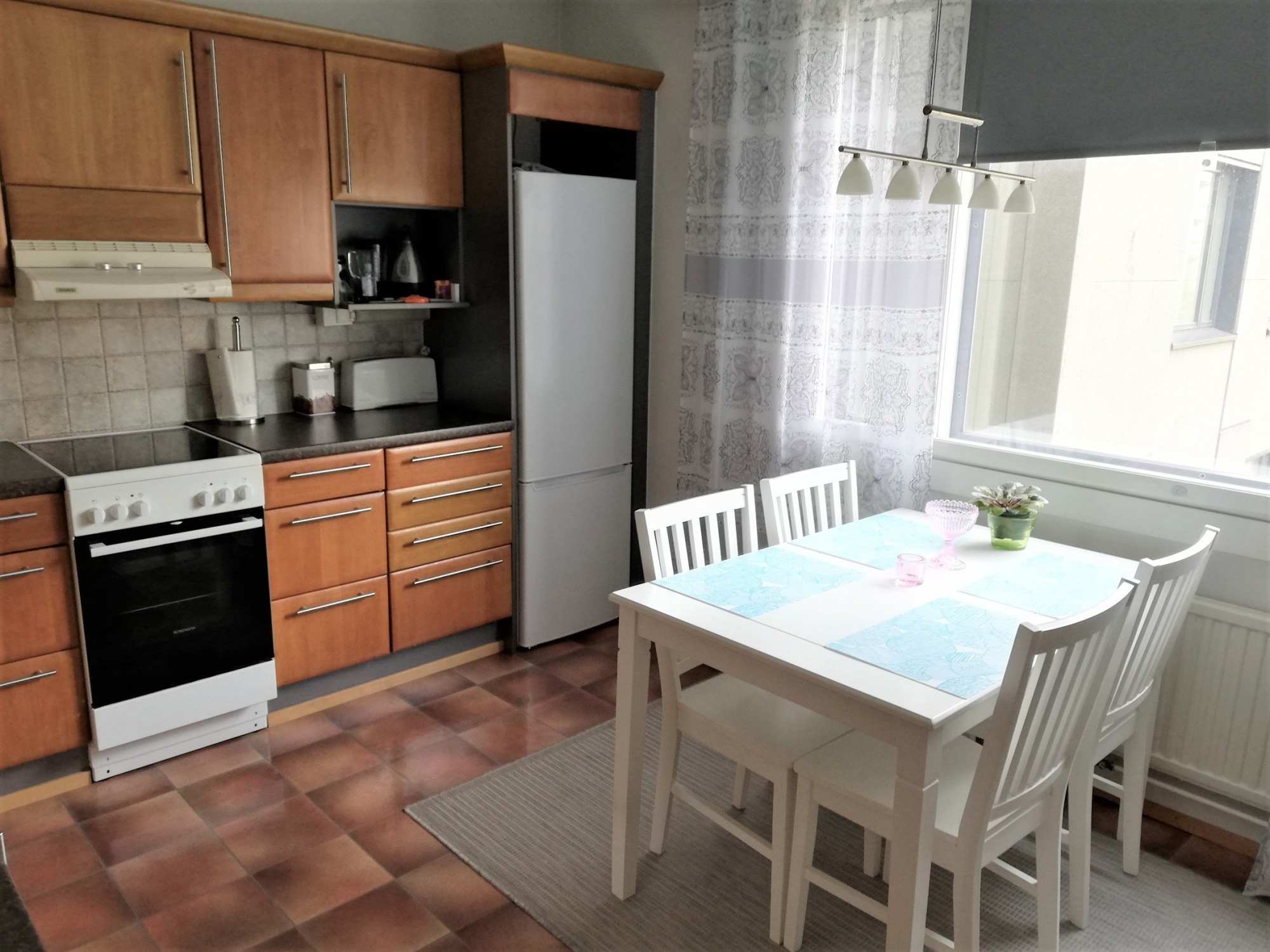 | Keittiön varusteet | Jääkaappipakastin (uusittu 2020), liesi (uusittu 2020), liesituuletin (suodattimella) ja astianpesukone |