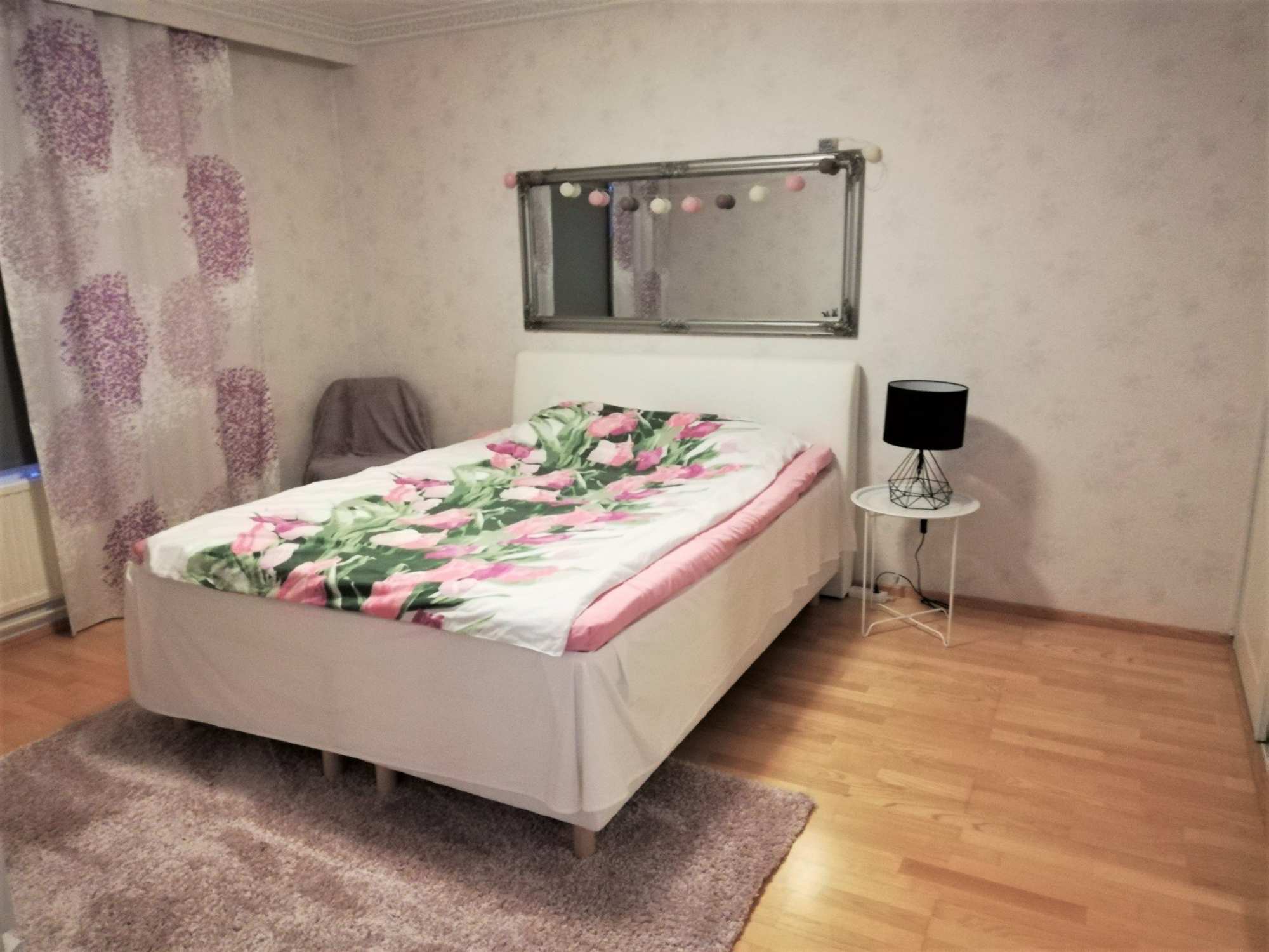 | Makuuhuoneen materiaalit | Lattia: Parketti Seinät: Tapetti |