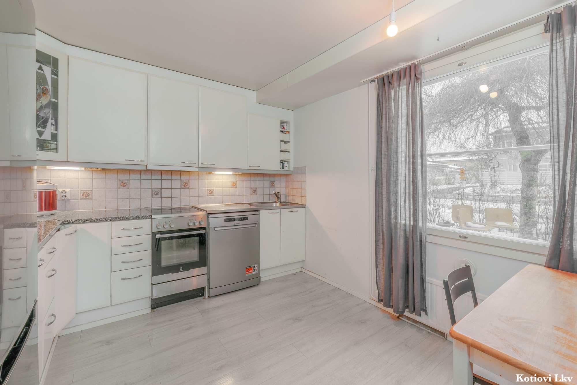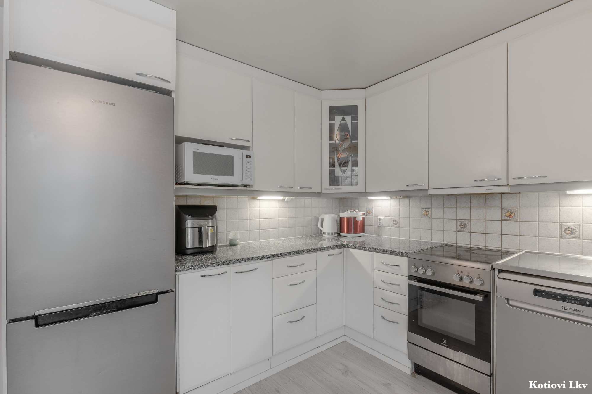 | Keittiön varusteet | Jääkaappipakastin, liesi, liesituuletin ja astianpesukone |