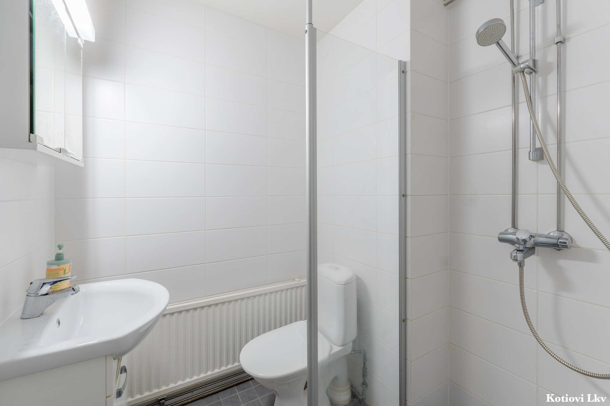 | Kylpyhuoneen varusteet | WC-istuin, suihku, pesukoneliitäntä, peilikaappi, pesuallas, allaskaappi ja käynti ulos |