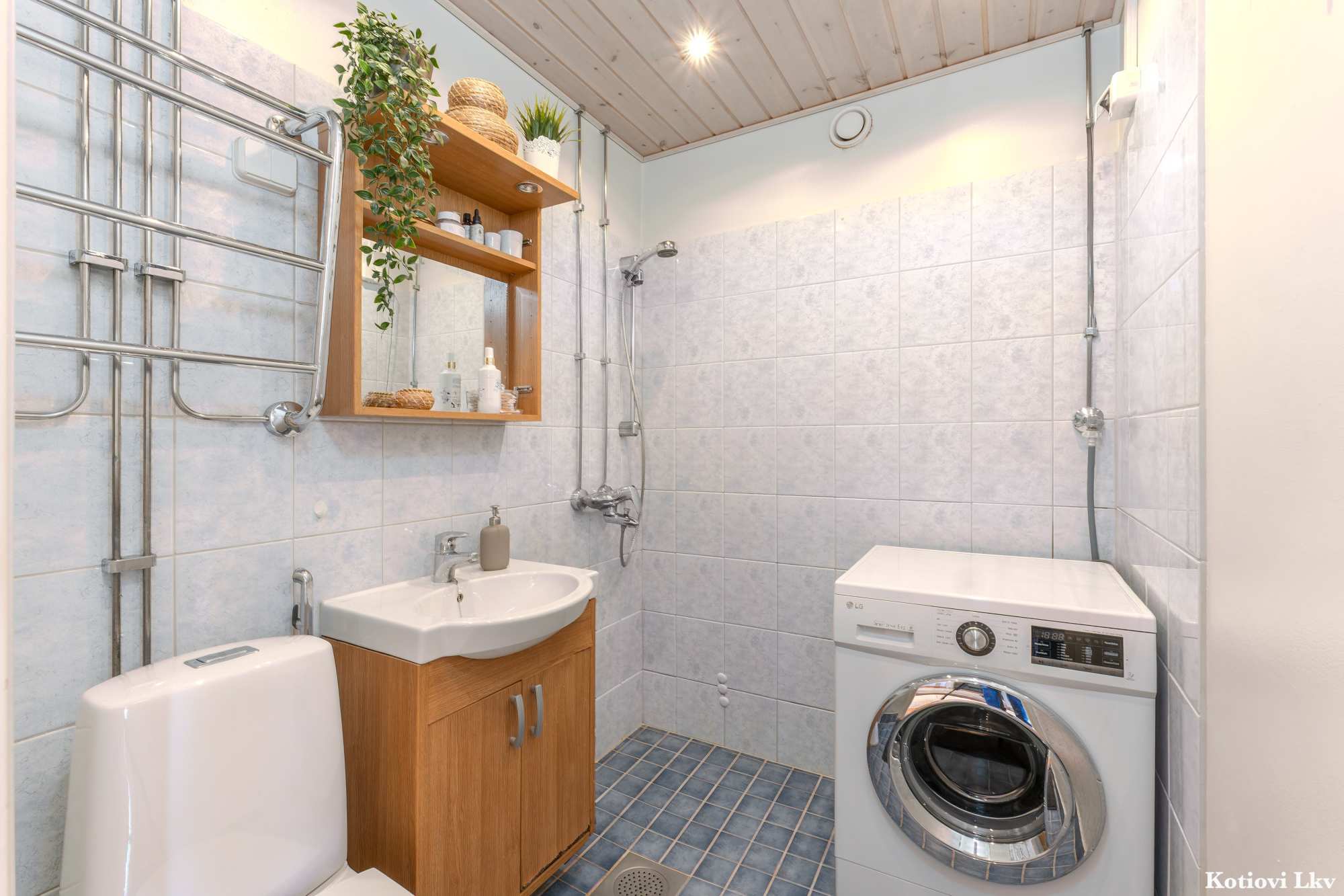 | Kylpyhuoneen materiaalit | Lattia: Laatta Seinät: Kaakeli |