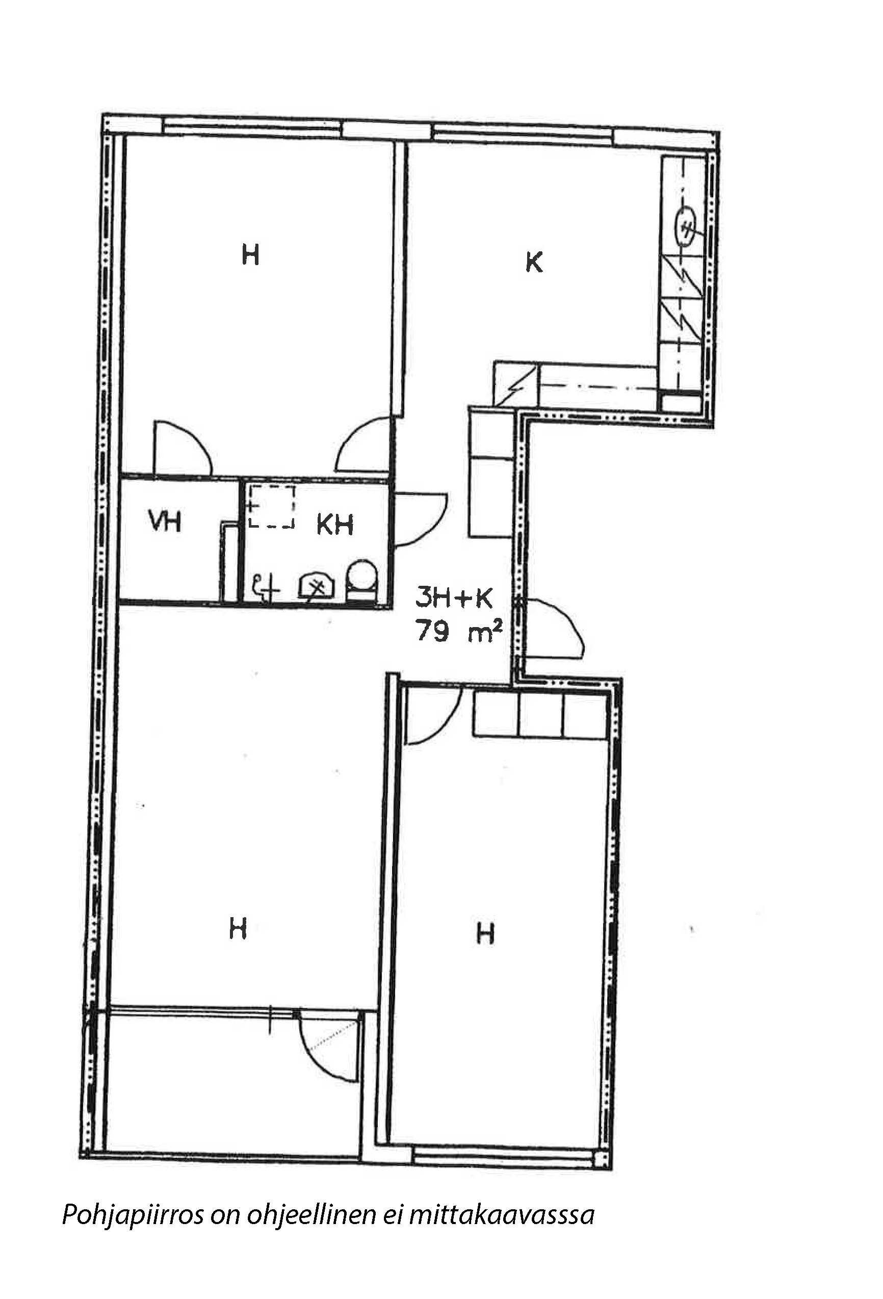 | Huoneistoselitelmä | 3h,k,kph,vh,lasitettu parveke |